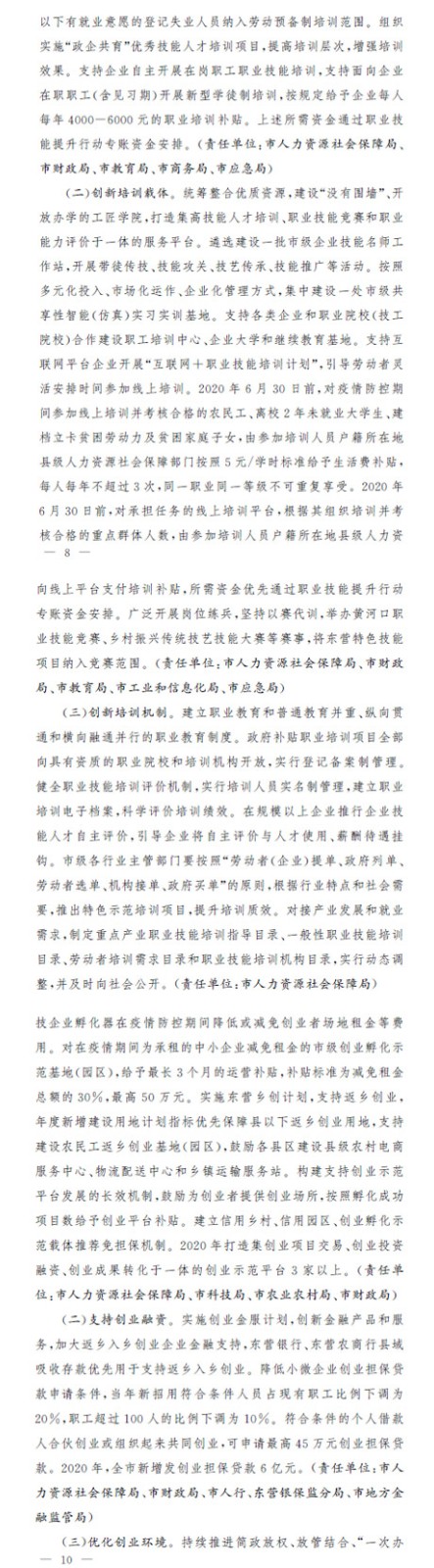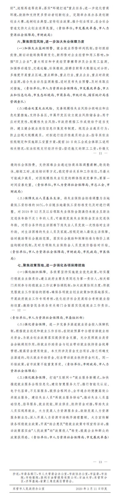 東營市人民政府關于進一步做好疫情防控形勢下穩(wěn)就業(yè)工作的若干政策措施的通知
